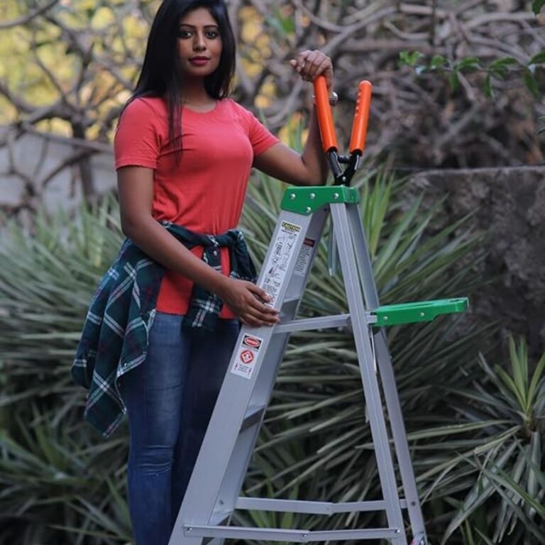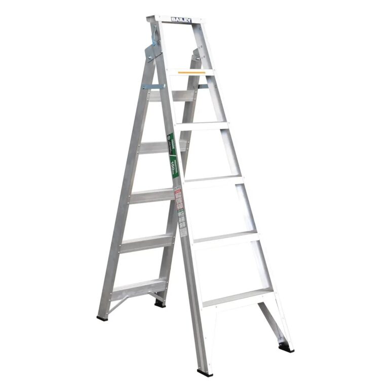 The 108 Aluminium 7 Step with Platform Ladder features seven slip-resistant steps and a sturdy top platform, providing durability, safety, and convenience for various tasks.